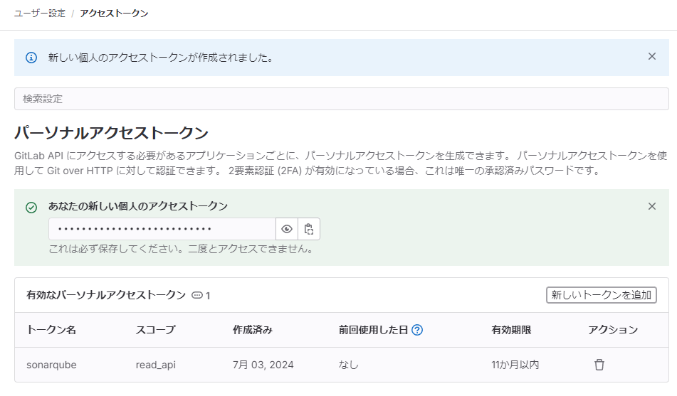 1. 생성한 계정에서 access token을 발행한다. token의 유효기간은 최대 1년이다. token은 api 권한을 부여한다.